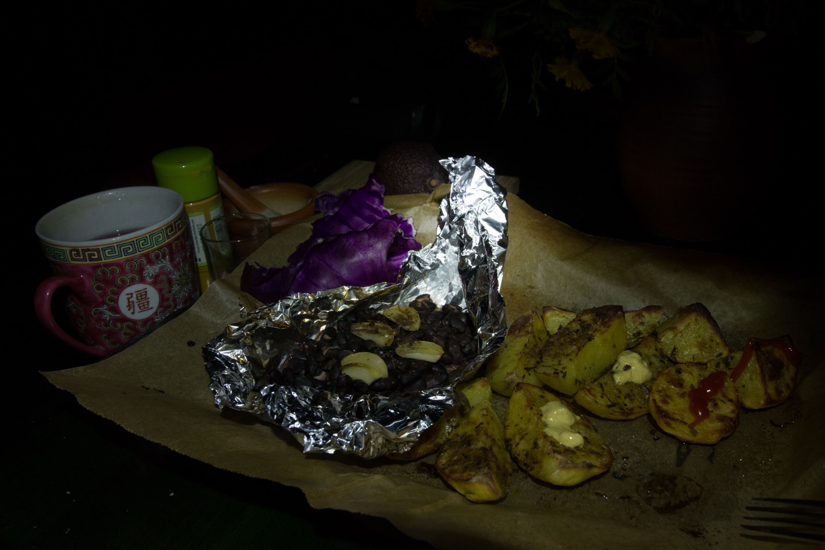 Oven food and a salad